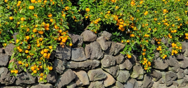 제주도 방언으로 동네 작은 골목길을 올레라고 한다. 특히 서귀포 효돈길은 제주형 농촌체험관광! 이름하여 감귤꽃 농촌체험길로 보복길과 같이 많이 찾는 코스이다. 봄에는 눈 내린듯 하얗게 꽃이피고 은은한 귤 꽃향기는 진하지도 않으면서 걷는이로 하여금 꽃 향기에 빠져든다. 아무곳에서나 느껴보지 못한 또 다른 정취를 맛보는 행운은 노력하는 자만의 선물일것이리라. 효돈길에는 담장넘어 무게에 못이겨 길에 닿을듯 늘어져 있는 광경은 정말 이색적이다. 화산암의 검은색 담장 돌, 주황색깔의 귤, 파란 귤이파리는 정말 조화롭다 못해 신비롭다. 금방이라도 골목어귀에 할머니가 지팡이를 짚고 오실것 같은 착각에 빠진다. 제주 효돈은 제주에서도 가장 따뜻한 곳이란다. 효돈 길 일부는 소방도로 개설공사를 하고 있어 얼마남지 않은 올레길이 기억속으로 사라질것 같아 맘 한켠엔 참 아쉽다는 생각이 든다.