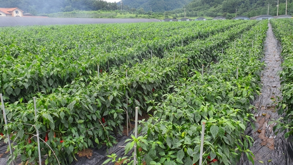 “비가 워낙에 오니까 이렇게 잠깐 맑은 날 약을 해야죠. 올해는 비 때문에 농사가 엉망입니다. 고추는 물을 싫어하잖아요. 병이 자꾸 생겨요. 약을 제때 못해 주니까. 올해 고추 값이 좀 비쌀 겁니다. 장마 때문에 많이 상해 버렸으니까.”