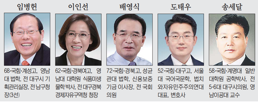 현재 중·남구에는 임병헌 전 남구청장, 이인선 전 대구경북경제자유구역청장, 배영식 전 의원, 도태우 변호사 등이 출마 선언과 함께 예비후보로 등록, 국민의힘 공천을 노리며 표밭을 훑고 있다.