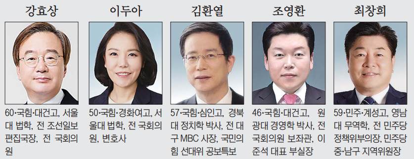 전직 의원으로는 김재원·강효상·이두아 전 의원이 이름을 올리고 있다. 김환열 전 대구MBC 사장 등도 거론되고 있으며 조영환 이준석 국민의힘 대표 부실장도 물망에 올라 있다.