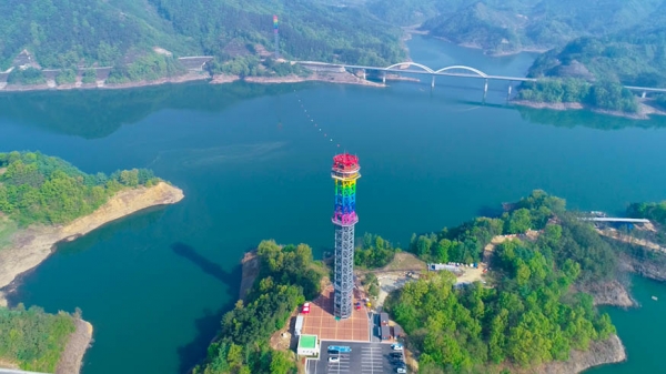 김천시 부항댐 위에 설치된 ‘레인보우 짚와이어’의 철탑은 높이 93m, 길이는 왕복 1.7km에 달한다. 출발타워 85m 높이에는 둘레 38m의 둥근 공간을 안전줄을 매고 한 바퀴 둘러보는 스카이워크 체험시설도 마련돼 있다. 주변에 산내들 오토캠핑장, 어드벤처파크 등 김천 부항댐을 중심으로 하는 관광명소가 곳곳에 있다. 짚와이어 왕복 체험 이용료에는 부항면 지역상품 교환권 5,000원이 포함되어 있어 특산품을 덤으로 가져갈 수 있다. 스카이워크는 예약이 필수이며 짚와이어 체험은 전화, 인터넷 예약이나 현장 발권도 가능하다.
