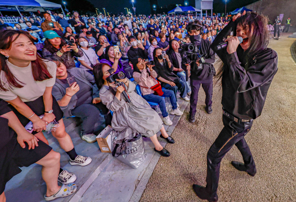 강아지와 산책하다 발길을 멈춘 김춘옥(59)씨도 “산책하던 중 젊은 기운에 매료돼 구경하고 있었다. 록은 잘 모르지만 활기차서 기분이 좋다”며 “강렬하고 쿵쿵거리는 소리에 속이 다 시원하다”며 엄지를 치켜들었다.