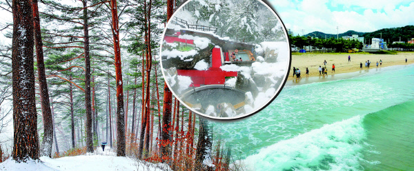 왕의 소나무라 일컬어지는 금강송숲. 청정함은 어디 내놓아도 빠지지 않은 동해바다, 그리고 물 좋기로 소문난 백암온천, 덕구온천까지 울진에 오면 이 모든 것을 한 번에 즐길 수 있다.