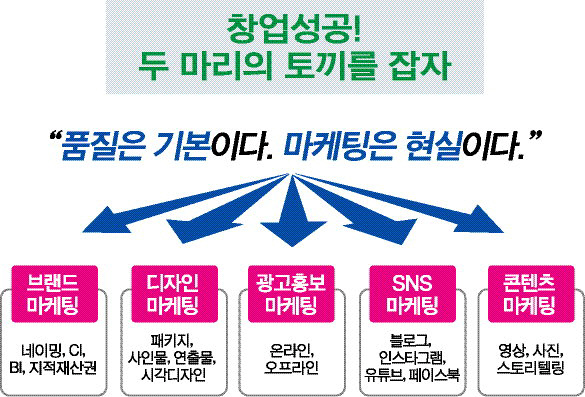 제품이나 서비스에 있어 마케팅을 강조하다 보니 제품이 중요하지 않음을 이야기하는 것은 아니다. 제품의 품질 확보는 기본이 되어야 한다. 즉, 기업의 대표(CEO)는 [두 마리의 토끼]를 잡아야 한다. (1)제품의 품질 확보를 잡고, (2)마케팅 실행을 잡아야 한다. 제품의 품질만 잡고 마케팅의 품질을 잡지 못하면 신규고객 창출은 어렵다. 반대로 제품의 품질은 잡지 못하고, 마케팅만 잘 진행한다면, 신규고객은 확보하겠지만 재구매고객의 확보는 멀어진다.